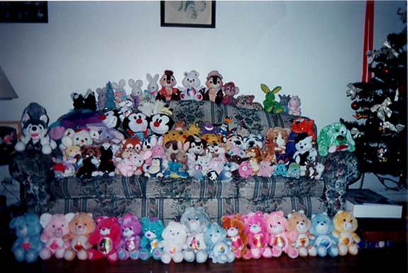 Francis and I like to collect stuffed animals, and we have quite a few of them. Here is our "family" as of New Year's Eve 2001.